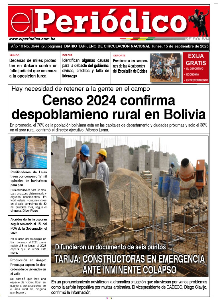 InicioTapasTapa PrincipalEdición 15-09-2025 Edición 15-09-2025 Por El Periódico 15 septiembre, 2025 FacebookXWhatsApp Comparte esto: Comparte en Facebook (Se abre en una ventana nueva) Facebook Compartir en X (Se abre en una ventana nueva) X ARTÍCULOS RELACIONADOS Tapa Deportivo Edición Deportiva 3-04-2026 3 abril, 2026 Tapa Principal Edición 3-04-2026 3 abril, 2026 Tapa Salud al Día Suplemento del Día 2-04-2026 2 abril, 2026 LO MÁS LEIDO Transporte entrerriano continúa en paro y bloqueo contra el gobierno El Sedes confirmó 61 contagios de chikungunya Edición 2-04-2026 La alcaldía tiene no más de Bs 20 millones para obras de inversión Asamblea prevé analizar la próxima semana observaciones a Ley del 45%