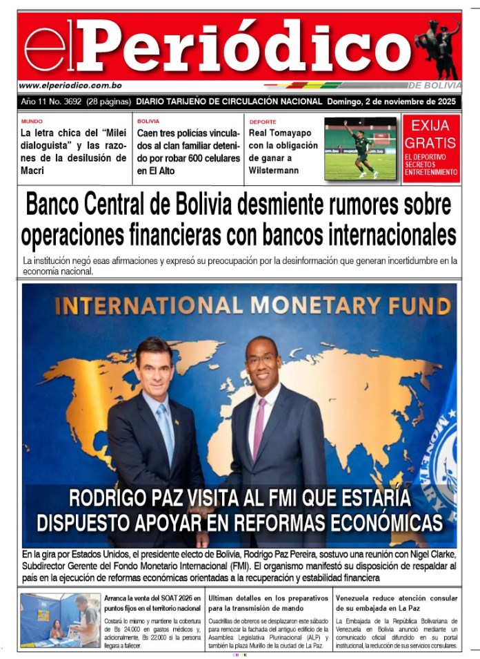 InicioTapasTapa PrincipalEdición 2-11-2025 Edición 2-11-2025 Por El Periódico 2 noviembre, 2025 FacebookXWhatsApp Comparte esto: Comparte en Facebook (Se abre en una ventana nueva) Facebook Compartir en X (Se abre en una ventana nueva) X ARTÍCULOS RELACIONADOS Tapa Deportivo Edición Deportiva 3-04-2026 3 abril, 2026 Tapa Principal Edición 3-04-2026 3 abril, 2026 Tapa Salud al Día Suplemento del Día 2-04-2026 2 abril, 2026 LO MÁS LEIDO Transporte entrerriano continúa en paro y bloqueo contra el gobierno El Sedes confirmó 61 contagios de chikungunya Edición 2-04-2026 La alcaldía tiene no más de Bs 20 millones para obras de inversión 40% de puestos de venta en mercados municipales están sin uso y vacíos