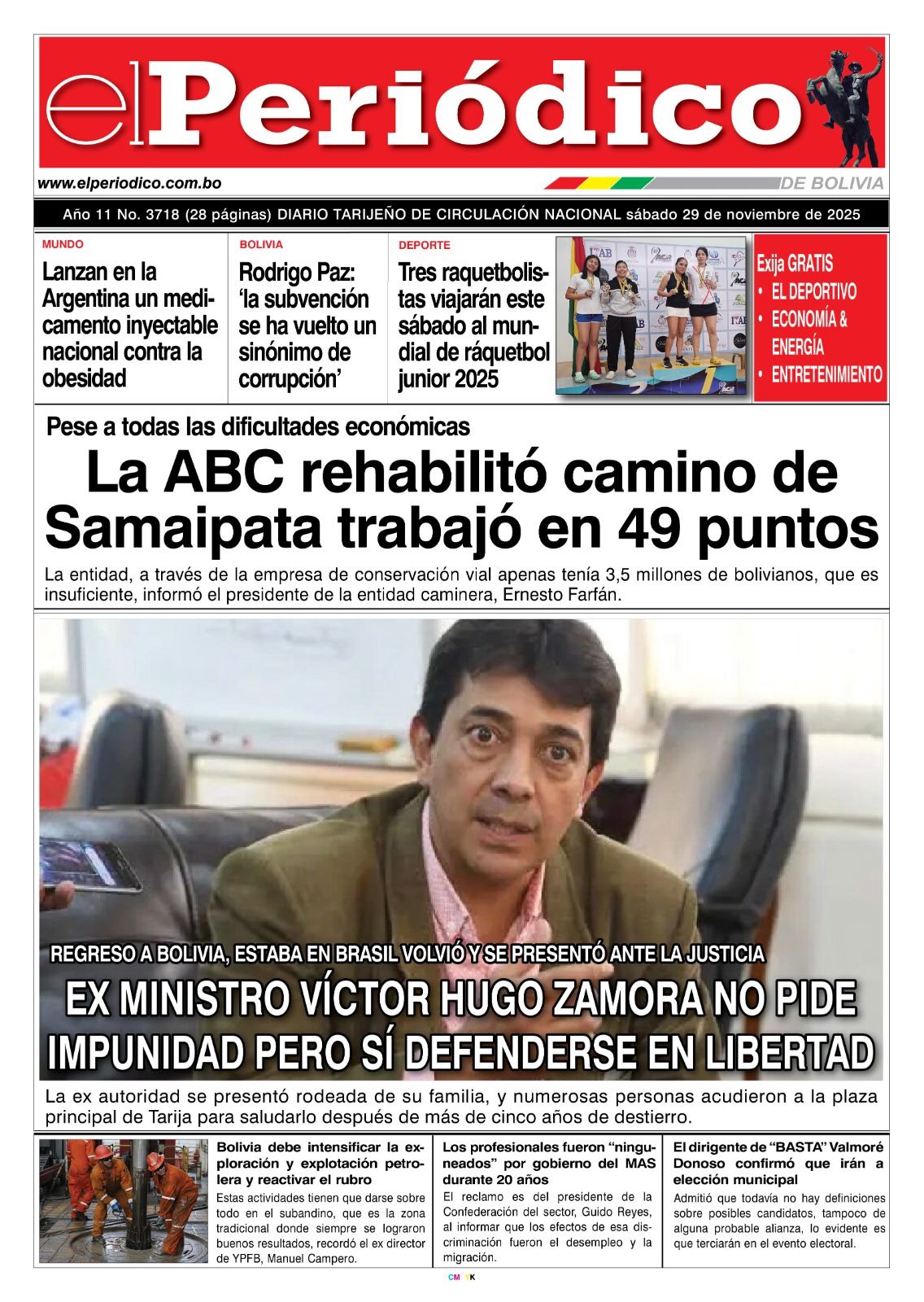 InicioTapasTapa PrincipalEdición 29-11-2025 Edición 29-11-2025 Por El Periódico 29 noviembre, 2025 FacebookXWhatsApp Comparte esto: Comparte en Facebook (Se abre en una ventana nueva) Facebook Compartir en X (Se abre en una ventana nueva) X ARTÍCULOS RELACIONADOS Tapa Deportivo Edición Deportiva 3-04-2026 3 abril, 2026 Tapa Principal Edición 3-04-2026 3 abril, 2026 Tapa Salud al Día Suplemento del Día 2-04-2026 2 abril, 2026 LO MÁS LEIDO Transporte entrerriano continúa en paro y bloqueo contra el gobierno El Sedes confirmó 61 contagios de chikungunya Edición 2-04-2026 Asamblea prevé analizar la próxima semana observaciones a Ley del 45% La alcaldía tiene no más de Bs 20 millones para obras de inversión