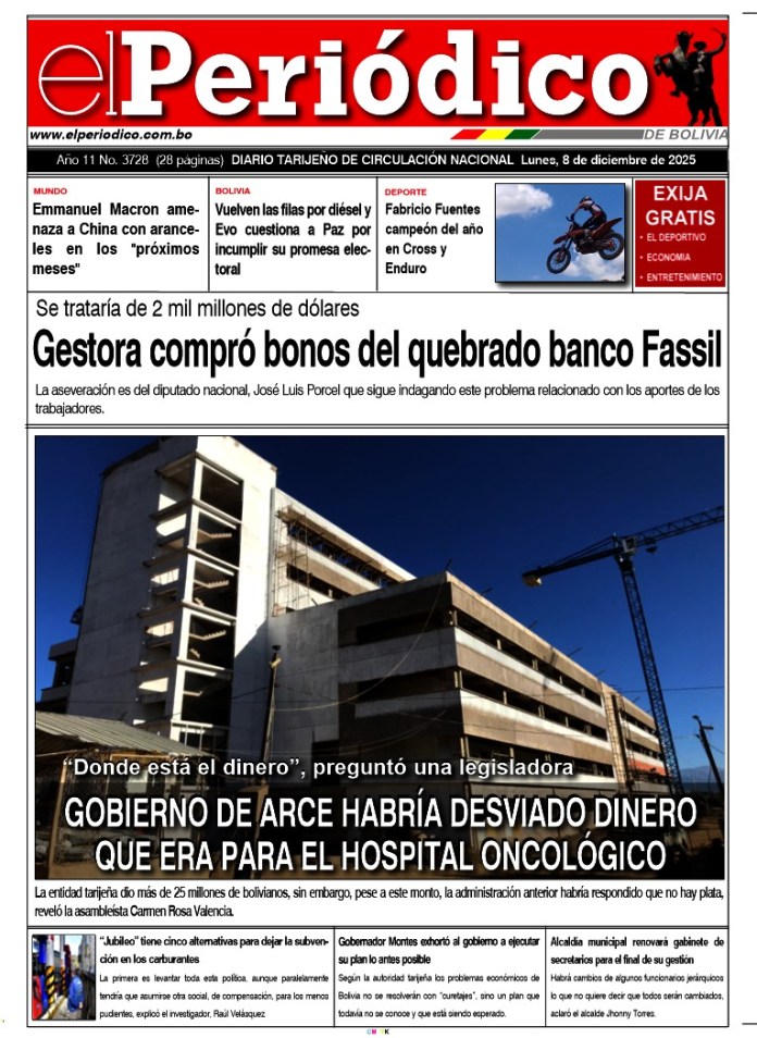InicioTapasTapa PrincipalEdición 8-12-2025 Edición 8-12-2025 Por El Periódico 8 diciembre, 2025 FacebookXWhatsApp Comparte esto: Comparte en Facebook (Se abre en una ventana nueva) Facebook Compartir en X (Se abre en una ventana nueva) X ARTÍCULOS RELACIONADOS Tapa Deportivo Edición Deportiva 4-04-2026 4 abril, 2026 Tapa Principal Edición 4-04-2026 4 abril, 2026 Tapa Deportivo Edición Deportiva 3-04-2026 3 abril, 2026 LO MÁS LEIDO Asamblea prevé analizar la próxima semana observaciones a Ley del 45% El Chaco que lucha por permanecer Presentaron proyecto de ley nacional para redistribución del 50-50 de recursos El estudio para asfaltado de Impora-Hornillos tiene un avance del 80% Edición 3-04-2026