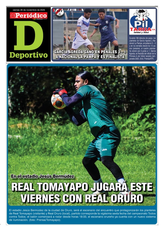 InicioTapasTapa DeportivoEdición Deportiva 28-11-2025 Edición Deportiva 28-11-2025 Por El Periódico 28 noviembre, 2025 FacebookXWhatsApp Comparte esto: Comparte en Facebook (Se abre en una ventana nueva) Facebook Compartir en X (Se abre en una ventana nueva) X ARTÍCULOS RELACIONADOS Tapa Deportivo Edición Deportiva 3-04-2026 3 abril, 2026 Tapa Principal Edición 3-04-2026 3 abril, 2026 Tapa Salud al Día Suplemento del Día 2-04-2026 2 abril, 2026 LO MÁS LEIDO Transporte entrerriano continúa en paro y bloqueo contra el gobierno El Sedes confirmó 61 contagios de chikungunya Edición 2-04-2026 La alcaldía tiene no más de Bs 20 millones para obras de inversión Asamblea prevé analizar la próxima semana observaciones a Ley del 45%