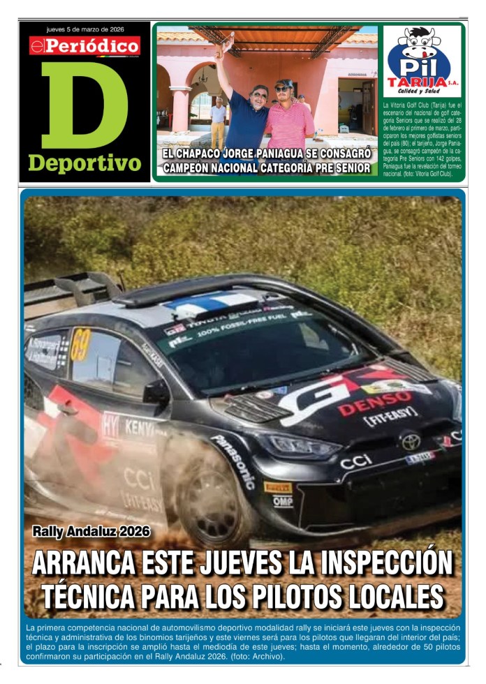 InicioTapasTapa DeportivoEdición Deportiva 5-03-2026 Edición Deportiva 5-03-2026 Por El Periódico 5 marzo, 2026 FacebookXWhatsApp Comparte esto: Comparte en Facebook (Se abre en una ventana nueva) Facebook Compartir en X (Se abre en una ventana nueva) X ARTÍCULOS RELACIONADOS Tapa Salud al Día Suplemento del Día 16-04-2026 16 abril, 2026 Tapa Deportivo Edición Deportiva 16-04-2026 16 abril, 2026 Tapa Principal Edición 16-04-2026 16 abril, 2026 LO MÁS LEIDO Árabes y chinos dispuestos a invertir $us 1.300 millones en proyecto “Carrizal” Hallan el cadáver de una mujer en una bolsa de yute y activan investigación Edición 17-04-2026 Gobierno gestiona dinero en EE UU para estabilizar economía quebrada del país EMAT espera aplicar nueva tasa de recojo de basura tras cambio de autoridades