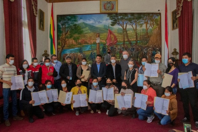 (elPeriódico – diciembre, 08/2021) En la víspera, el alcalde de Tarija, Johnny Torres Terzo, entregó la primera planimetría aprobada, logrando beneficiar a 26 familias del barrio Torrecillas, quienes ahora cuentan con los documentos legales reconocidos por la Dirección de Ordenamiento Territorial y por el Registro Único para la Administración Tributaria Municipal (RUAT), todo esto en el marco de la Ley Municipal 268.