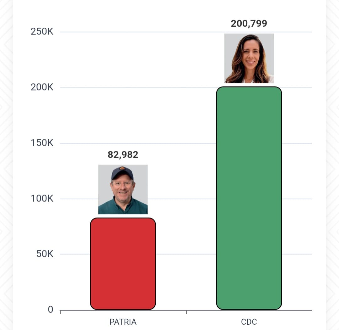 El Periódico-Abril-20-2026.- La candidata de Camino Democrático al Cambio (CDC) María René Soruco, es la virtual gobernadora de Tarija, al haber sacado el 70,8% de los votos, frente al 29,2% de su contendor de la alianza “Patria”, Adrián Oliva Alcázar.