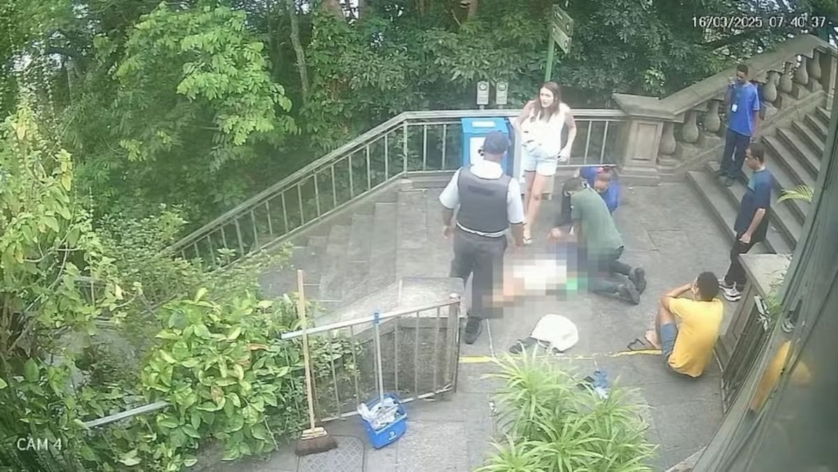 Un turista de 54 años murió mientras subía las escaleras del Cristo Redentor, en la zona sur de Río de Janeiro, Brasil. Las cámaras de seguridad que están ubicadas en las escalinatas registraron el momento exacto en el que el hombre se apoya en la baranda y cae al suelo. A pesar de que su nuera, que es enfermera, reaccionó de forma rápida y le realizó maniobras de reanimación cardiopulmonar (RCP), el hombre falleció en el lugar, según consignó el medio brasileño O Globo.