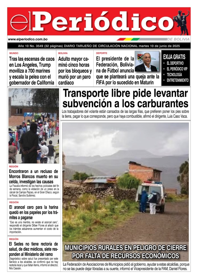 InicioTapasTapa PrincipalPortada Principal 10-06-2025 Portada Principal 10-06-2025 Por El Periódico 10 junio, 2025 FacebookXWhatsApp Comparte esto: Comparte en Facebook (Se abre en una ventana nueva) Facebook Compartir en X (Se abre en una ventana nueva) X ARTÍCULOS RELACIONADOS Tapa Principal Edición 13-04-2026 13 abril, 2026 Tapa Deportivo Edición Deportiva 12-04-2026 12 abril, 2026 Tapa Que Churo Suplemento del Día 10 abril, 2026 LO MÁS LEIDO Avión cae tras intentar agotar combustible para aterrizaje de emergencia Silencio en cabina: incertidumbre por aeronave que no establece contacto en pleno vuelo Edición 13-04-2026 Ministro Zamora explica posible causa del accidente aéreo Edición 13-04-2026
