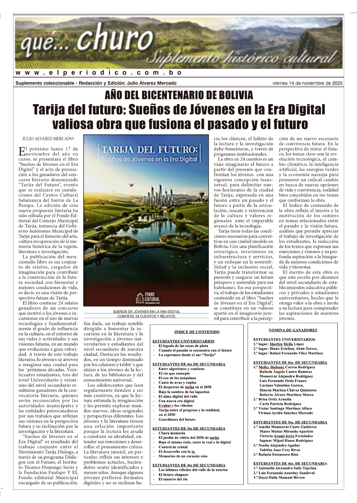 InicioTapasTapa Que ChuroPortada Suplemento del día 14-11-2025 Portada Suplemento del día 14-11-2025 Por El Periódico 14 noviembre, 2025 FacebookXWhatsApp Comparte esto: Comparte en Facebook (Se abre en una ventana nueva) Facebook Compartir en X (Se abre en una ventana nueva) X ARTÍCULOS RELACIONADOS Tapa Deportivo Edición Deportiva 3-04-2026 3 abril, 2026 Tapa Principal Edición 3-04-2026 3 abril, 2026 Tapa Salud al Día Suplemento del Día 2-04-2026 2 abril, 2026 LO MÁS LEIDO Transporte entrerriano continúa en paro y bloqueo contra el gobierno El Sedes confirmó 61 contagios de chikungunya Edición 2-04-2026 La alcaldía tiene no más de Bs 20 millones para obras de inversión 40% de puestos de venta en mercados municipales están sin uso y vacíos