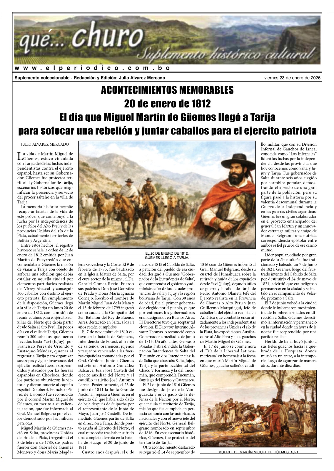 InicioTapasTapa Que ChuroSuplemento del Día 23-01-2026 Suplemento del Día 23-01-2026 Por El Periódico 23 enero, 2026 FacebookXWhatsApp Comparte esto: Comparte en Facebook (Se abre en una ventana nueva) Facebook Compartir en X (Se abre en una ventana nueva) X ARTÍCULOS RELACIONADOS Tapa Deportivo Edición Deportiva 5-04-2026 5 abril, 2026 Tapa Principal Edición 5-04-2026 5 abril, 2026 Tapa Deportivo Edición Deportiva 4-04-2026 4 abril, 2026 LO MÁS LEIDO Edición 6-04-2026 ABC logró crédito de Bs 15 millones para reponer camino al Gran Chaco Edición 7-04-2026 Jubileo: Nueva Ley debe tener seis cambios para recuperar el rubro hidrocarburífero Compulsa a favor de Procuraduría permite el reingreso petrolero a Domo Oso X-3