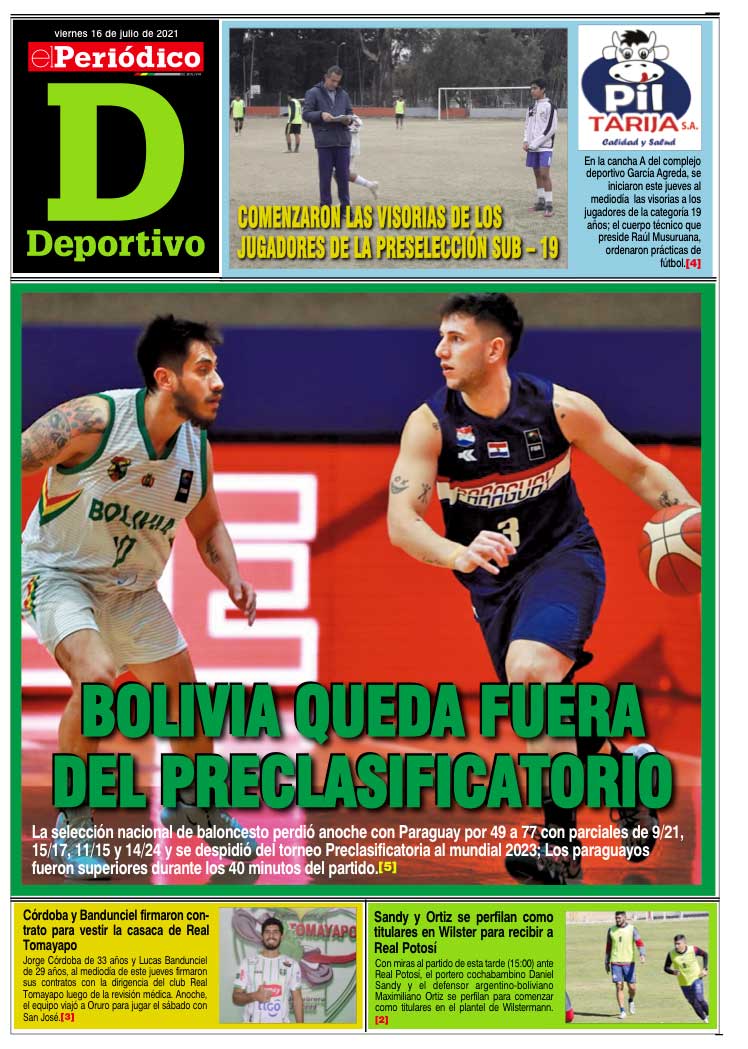 InicioTapasTapa DeportivoTapa deportivo Tapa deportivo Por El Periódico 16 julio, 2021 FacebookXWhatsApp Comparte esto: Comparte en Facebook (Se abre en una ventana nueva) Facebook Compartir en X (Se abre en una ventana nueva) X ARTÍCULOS RELACIONADOS Tapa Deportivo Edición Deportiva 21-04-2026 21 abril, 2026 Tapa Deportivo Edición Deportiva 16-04-2026 16 abril, 2026 Tapa Deportivo Edición Deportiva 12-04-2026 12 abril, 2026 LO MÁS LEIDO El Gobierno busca destrabar tensiones con transportistas en Tarija Universidades estatales quieren invertir en empresas para crear fuentes de empleo 50-50 modificará Ley de Autonomías y reordenará el esquema de competencias Tres fallecidos por fiebre amarilla en Santa Cruz alertan al Sedes Edición 21-04-2026